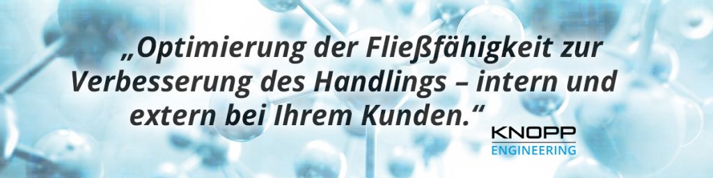 KNOPP FlowTopp-MH ist ein hocheffizientes Mahlhilfsmittel, welches zur Durchsatzerhöhung und Verbesserung der Mahlgutqualität bei der trockenen Vermählung im Mahlprozess (z.B. Rohrmühle) eingesetzt wird.